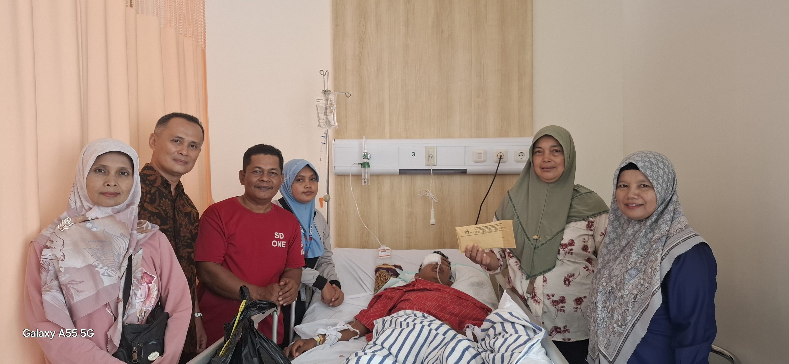 MAN 1 Kota Padang, Humas – Kepala MAN 1 Kota Padang yang diwakili oleh wakil kepala bidang kesiswaan dan wakil kepala bidang humas menyerahkan bantuan kepada keluarga Muhammad Iqbal Jabar Al-Lathif, siswa MAN 1 Kota Padang, Senin (23/6) di Rumah Sakit Yos Sudarso Kota Padang.