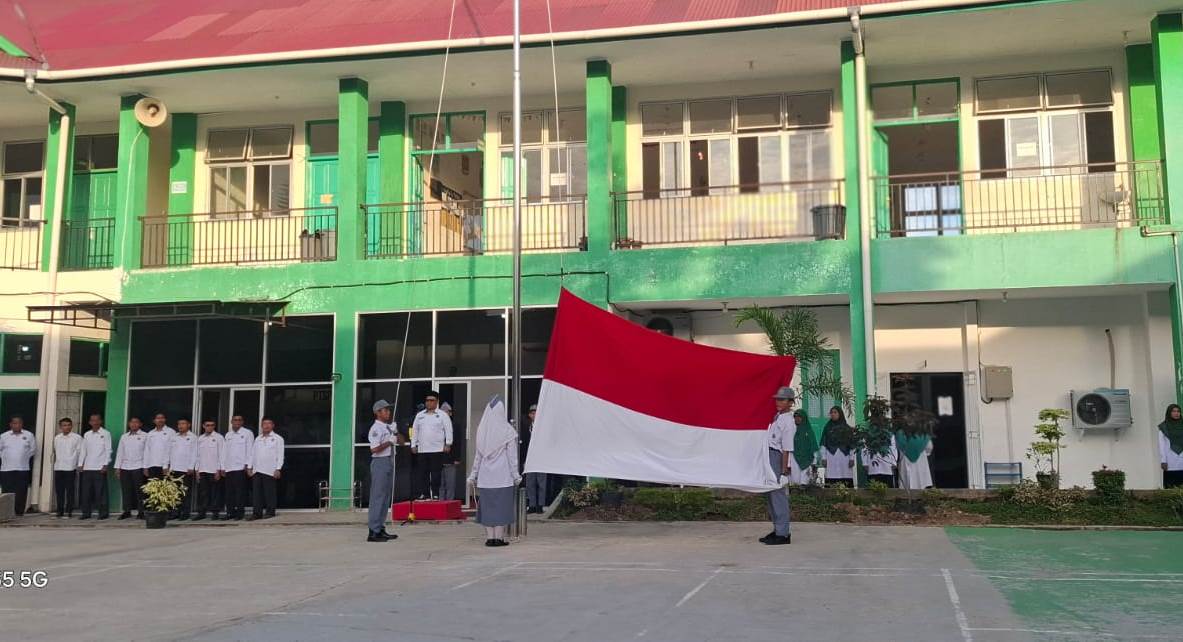 MAN 1 Kota Padang, Humas – Kepala MAN 1 Kota Padang, Afrizal menjadi pembina pada upacara penaikan bendera merah putih, Senin (4/8) di lapangan upacara MAN 1 Kota Padang.